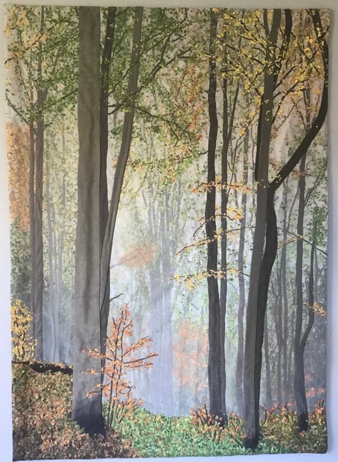 Textiel heeft voor Marga dezelfde facetten, dus ligt de combinatie voor de hand: de ruimte, kleuren en gelaagdheid van  een beeld uit haar omgeving vastleggen.