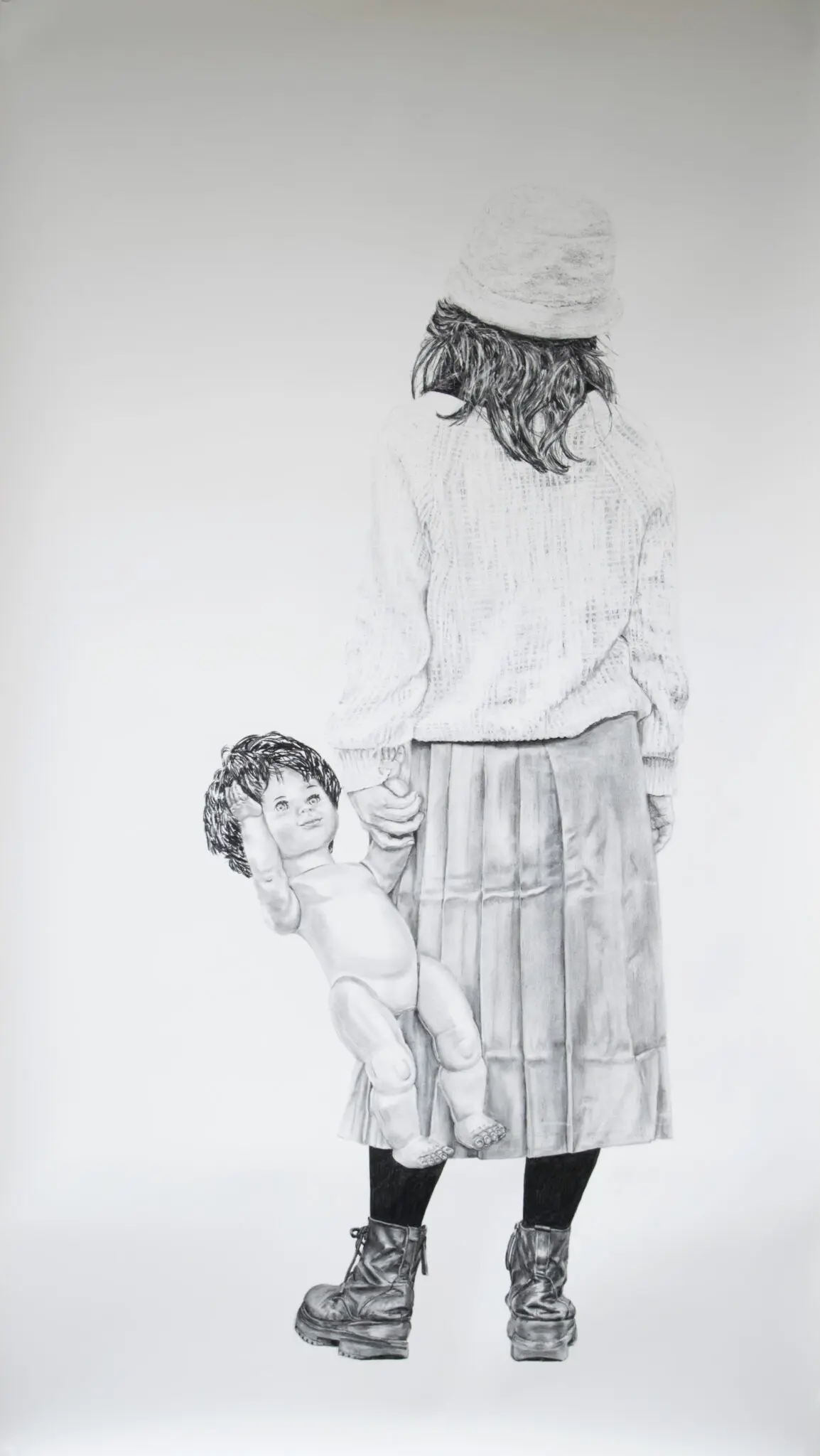 De Verwachting, een serie levensgrote houtskooltekeningen van jonge vrouwen.