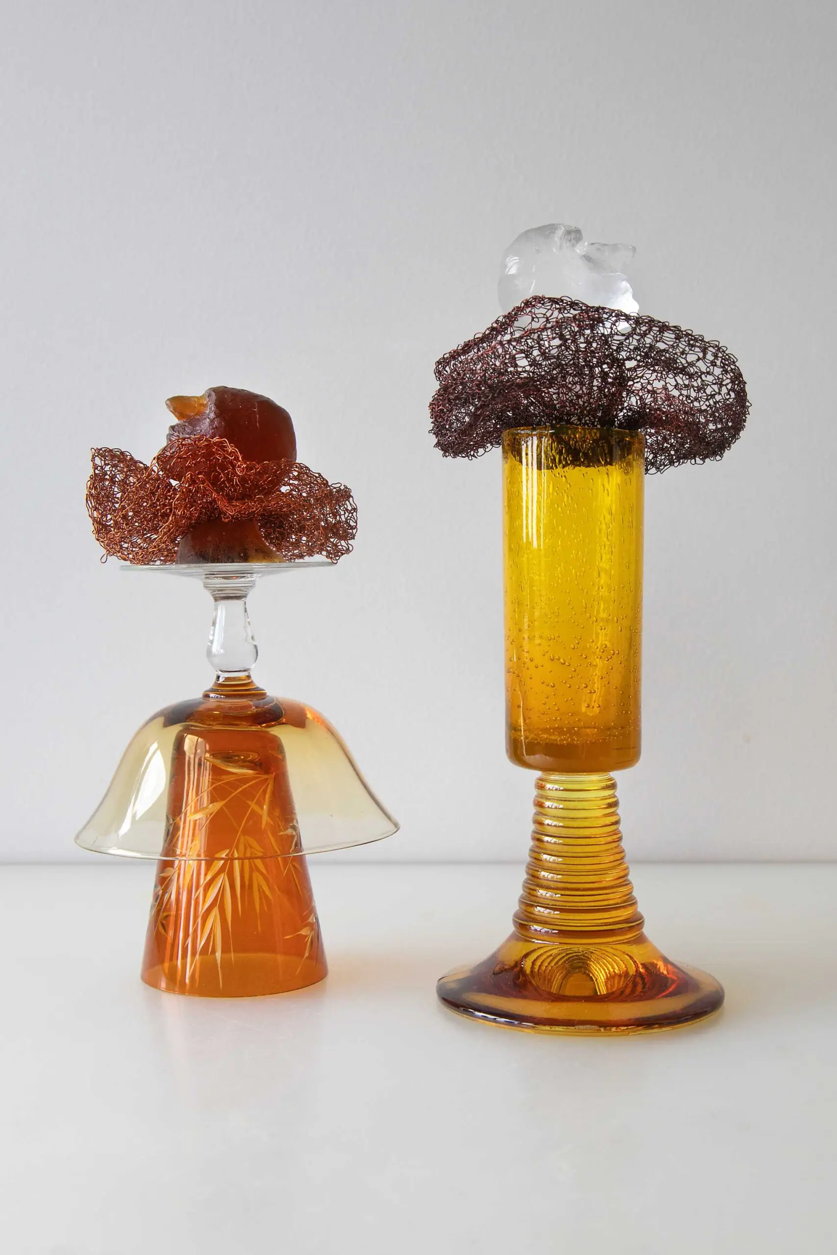 Een onderdeel dat steeds weer terugkomt, is gebreid of gehaakt metaaldraad.